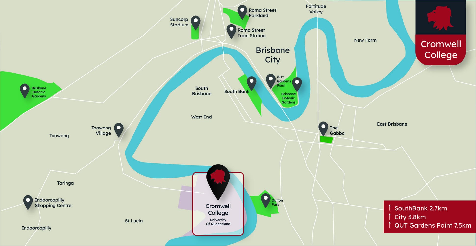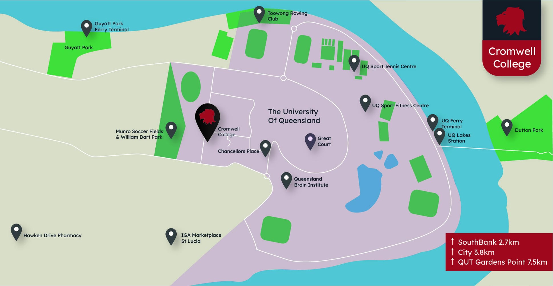 At Cromwell College, our facilities are designed to support your academic and personal growth in a vibrant community. Residents enjoy access to the UQ gym, pool and athletic track, including access to all gym classes, a three-level weights gym, cardio machines and unlimited aquatic equipment hire.